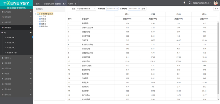 能耗數據報表的生成導出和自動打印功能