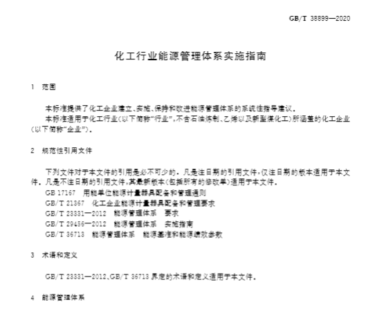 化工行業(yè)是一個(gè)高耗能行業(yè),也是我國能源消耗的重點(diǎn)行業(yè),其能耗總量占全國個(gè)工業(yè)總能耗的32%左右,化工行業(yè)覆蓋的企業(yè)類型頗廣,工藝流程迥異,且生產(chǎn)副產(chǎn)品種類繁多,普遍存在管理體系邊界不清晰、能源績效識別不全面等問題,本標(biāo)準(zhǔn)旨在引導(dǎo)化工企業(yè)合理建立能源管理體系,提高其能源管理績效,包括提高能源效率,降低能源消耗。